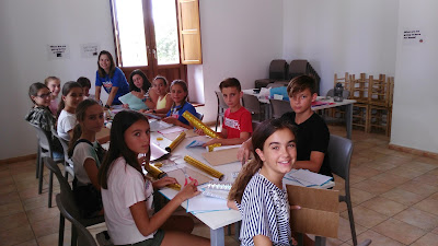 We ate salad and fideuà. We had yoghourt for dessert. Then, some free time.